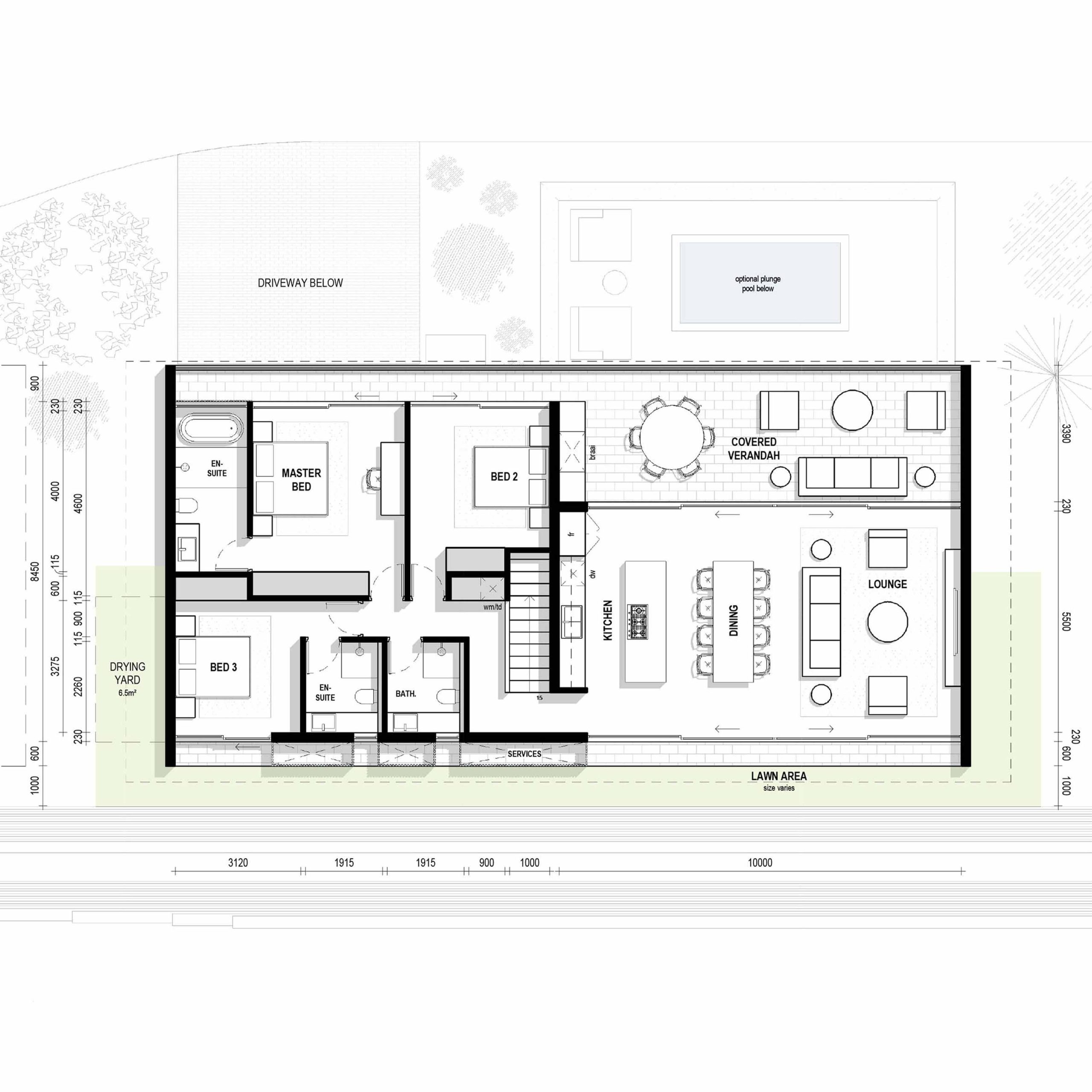 Living Area: 140m² | Covered Patio: 34m² | Balcony: 8m²